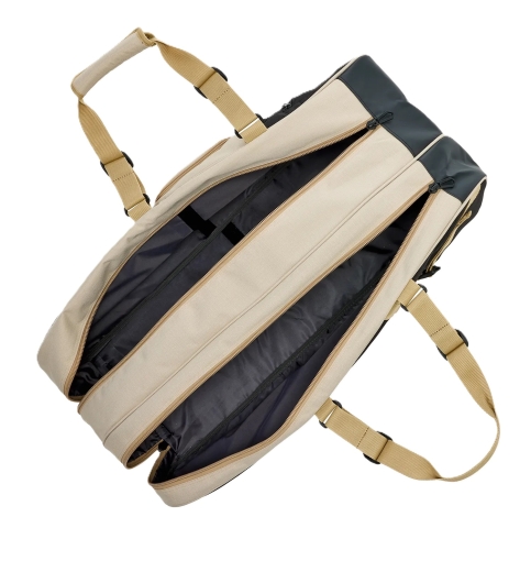 Dve priestranné komory: Hlavný úložný priestor je rozdelený do dvoch veľkých komôr, ktoré pohodlne pojmú vaše rakety, oblečenie aj ďalšie nevyhnutné vybavenie.